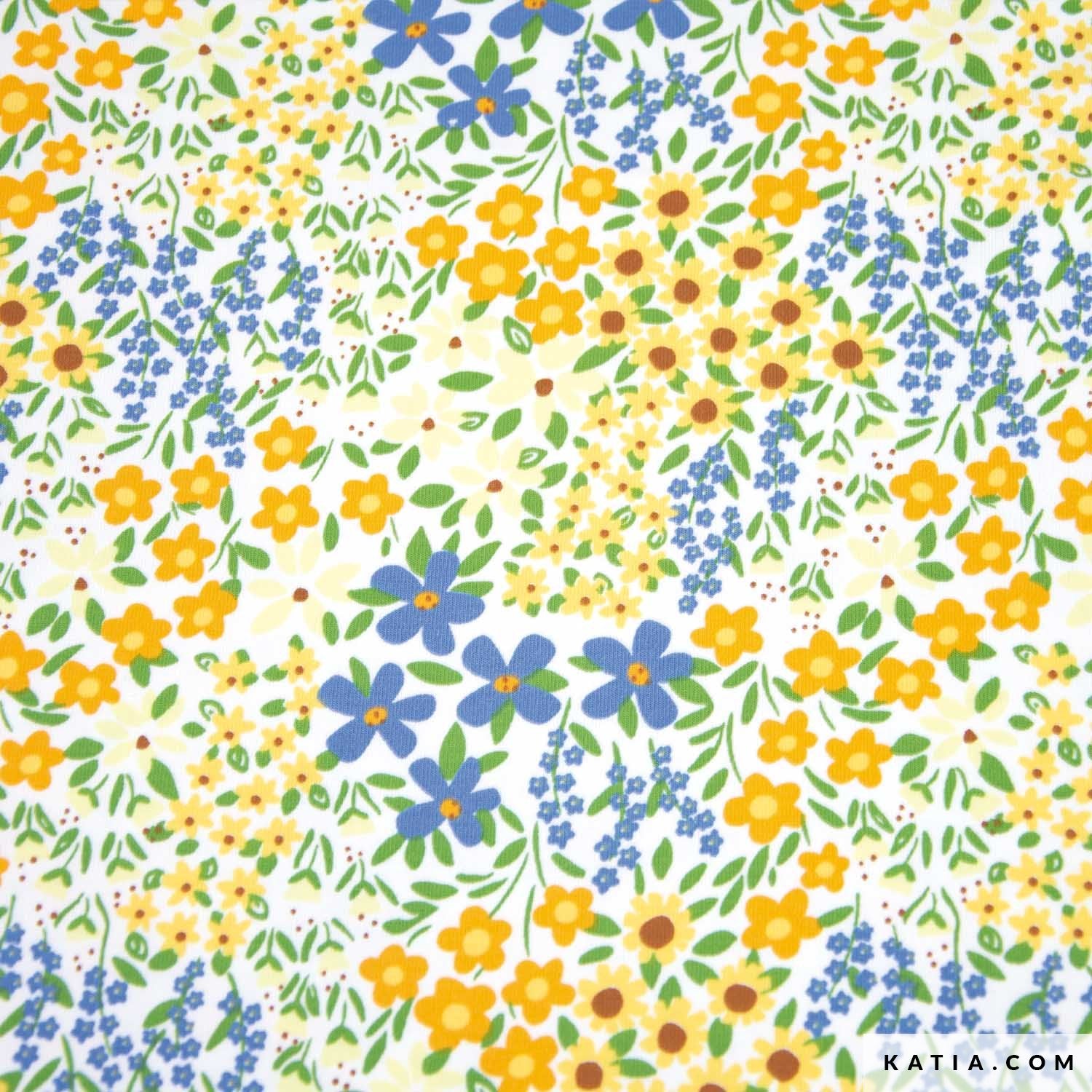 This T-shirt knit fabric features a fun fish print on a white background. This is a cotton knit fabric with 5% elastane in its composition, providing it greater elasticity and comfort to sew comfortable garments for the whole family. The Tropical Deep Sea Jersey T-shirt knit fabric by Katia Fabrics is ideal to sew original dresses or T-shirts for your little ones. In the Katia Fabrics sewing pattern magazines you’ll find the perfect patterns to sew T-shirts or dresses that fit this T-shirt knit fabric to a tee.
